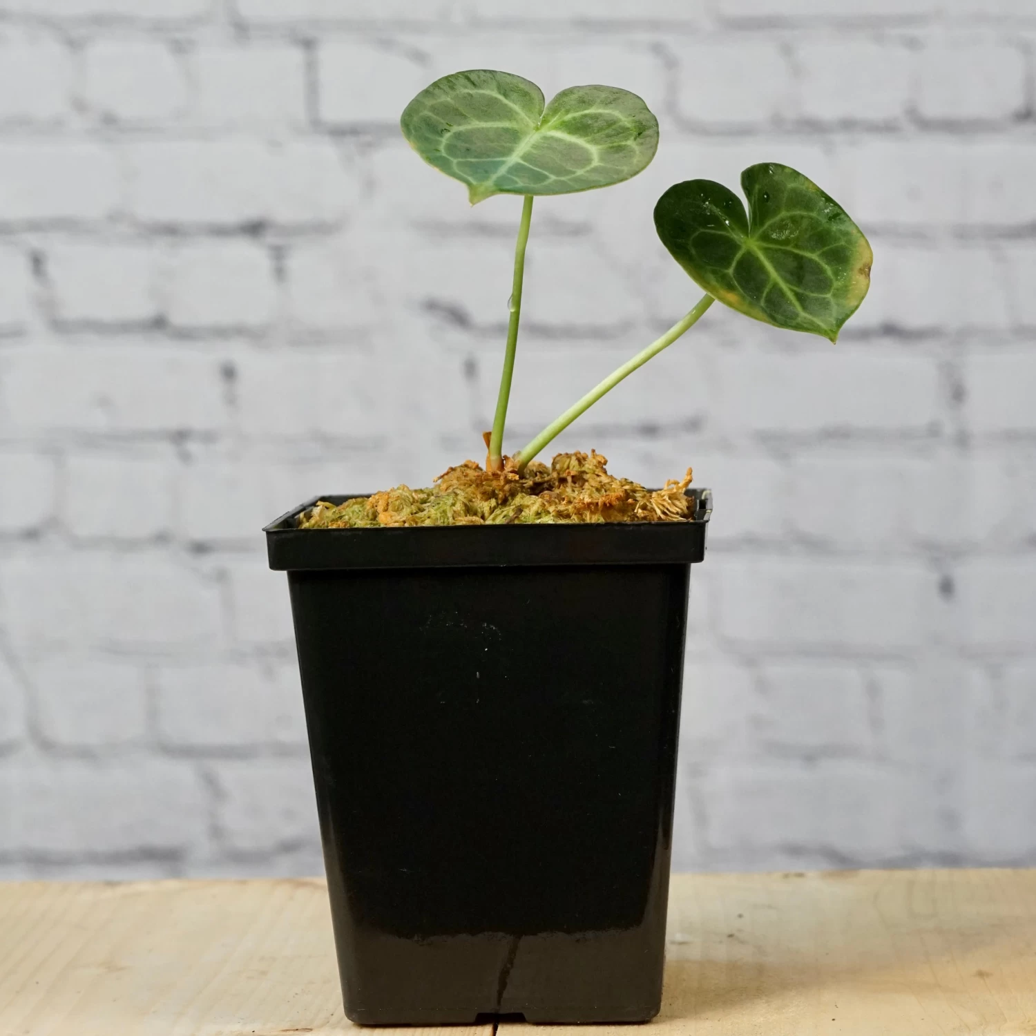 Anthurium clarinervium is a desirable Aroid native to Chiapas, Mexico. It features large, heart-shaped leaves with prominent white or silver veins that contrast beautifully against the deep green foliage. This plant is prized for its unique and elegant aesthetics. It typically thrives in bright, indirect light and requires consistently moist but not waterlogged soil.