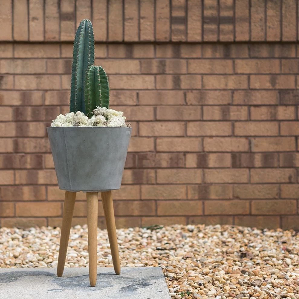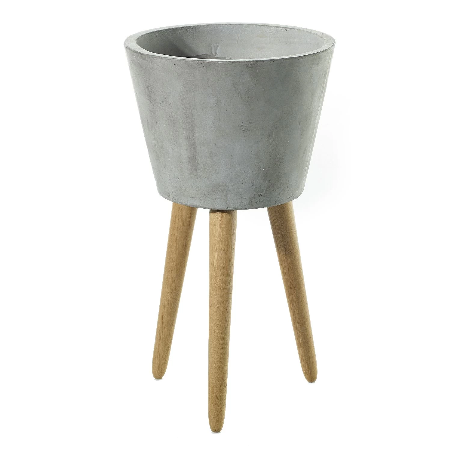 Concrete pot body and Oak wood tripod legs.