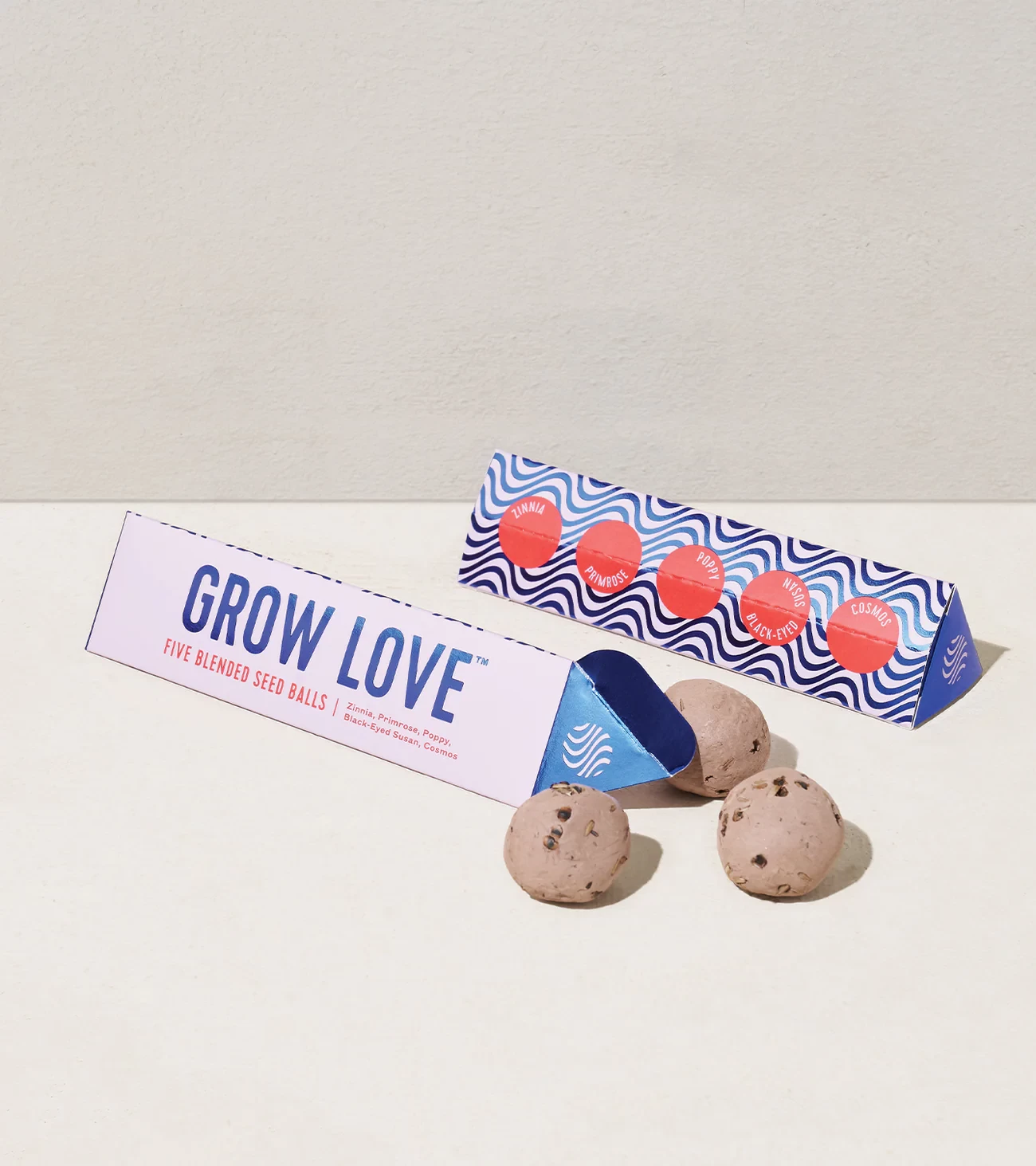 - Grow Love Seed Ball Blend: Zinnia, Primrose, Poppy, Black-Eyed Susan, Cosmo