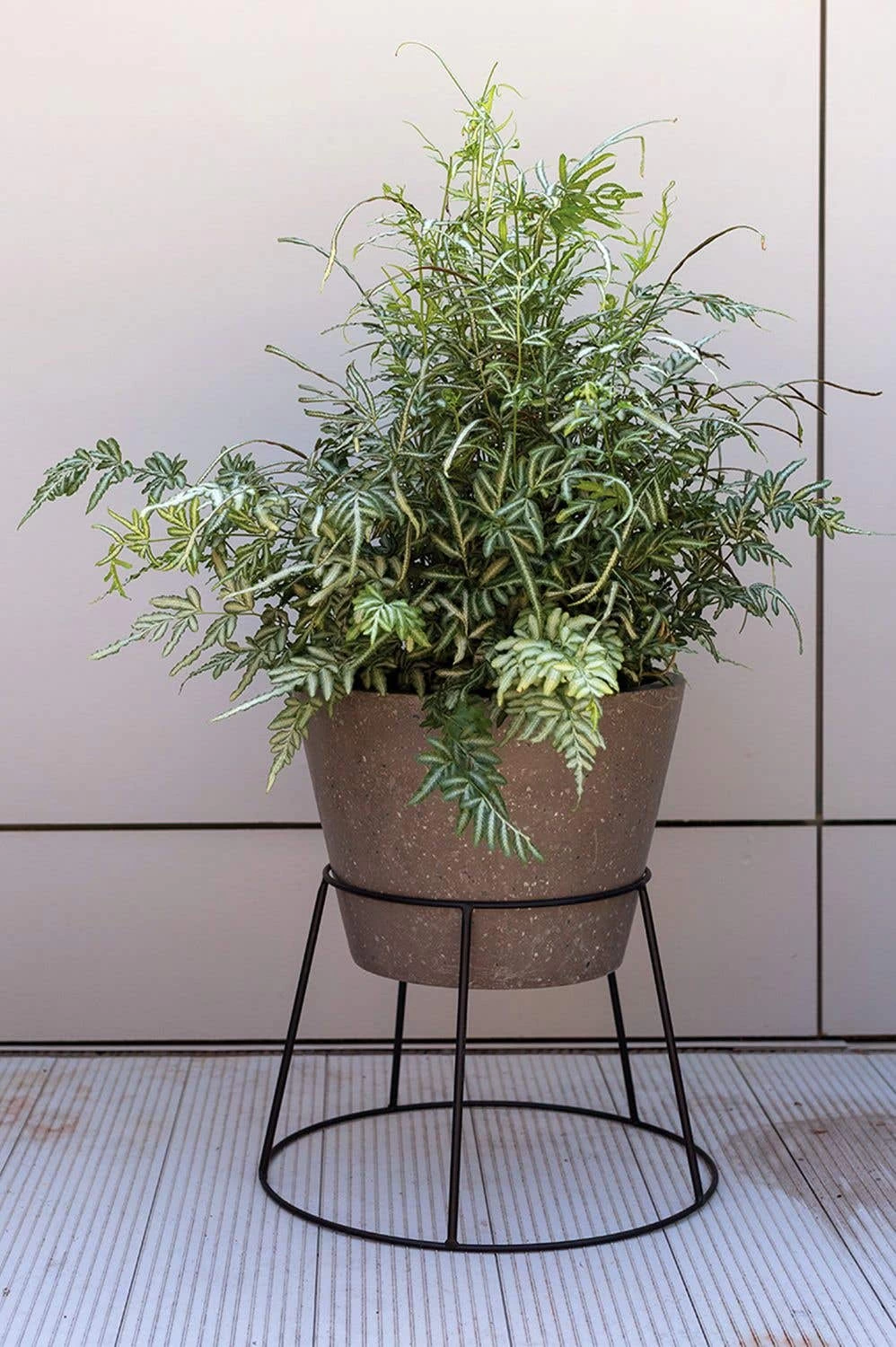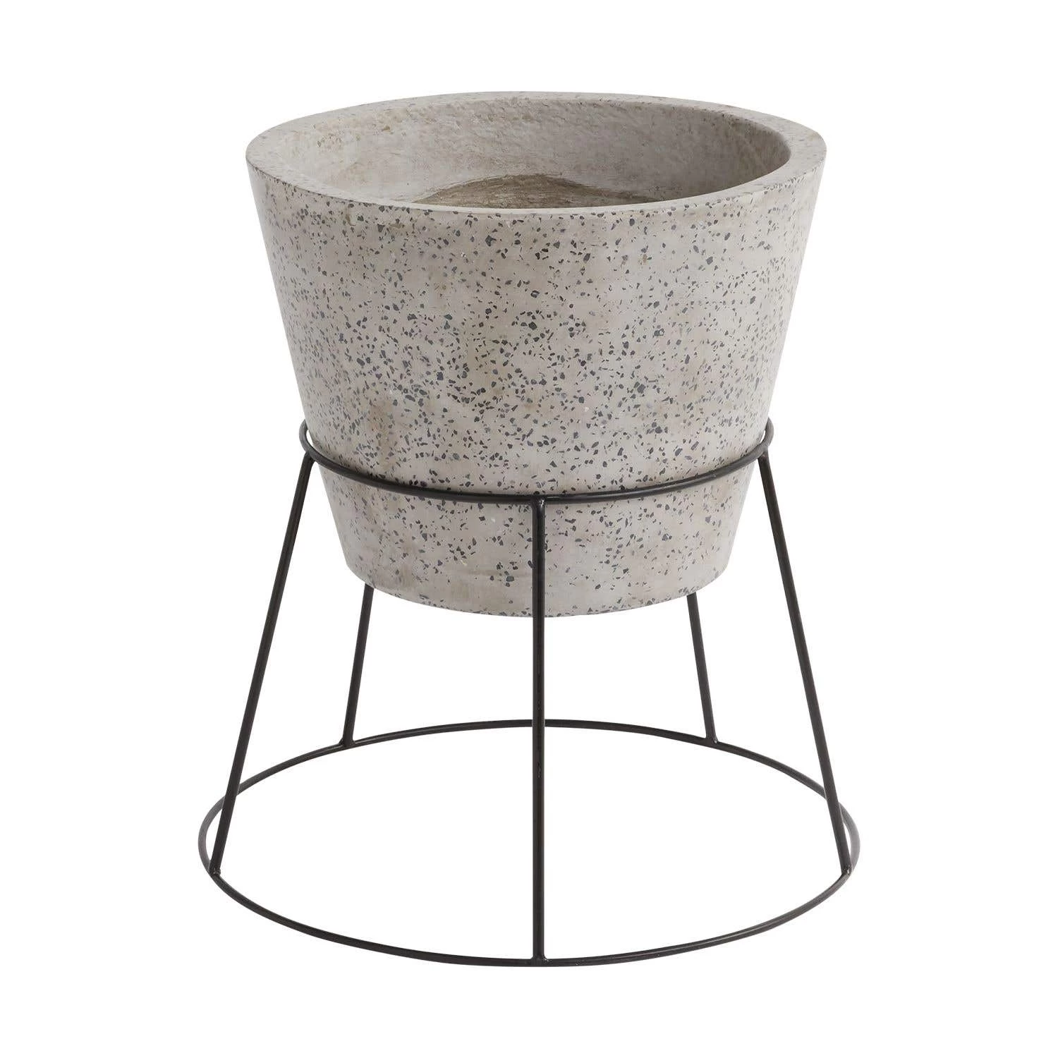 The Filli Planter by ACCENT DECOR has a modern silhouette in concrete and iron, the Filli Plant Stand features a drainage hole knockout and is designed for outdoor use.