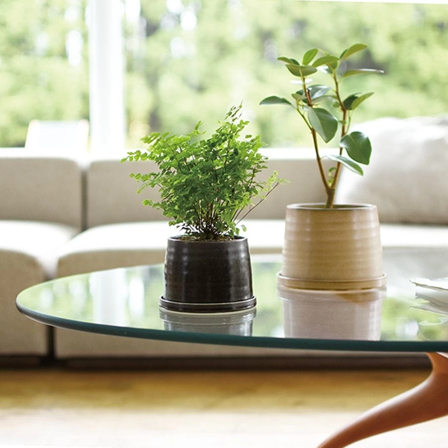 KINTO PLANT POT 192 has rich texture and expression which go well with vintage furniture. The trapezoidal form is stable and creates an interesting display with plants that have freely extending leaves. The drainage hole at the bottom allows water to drain freely and keeps plants healthy. It comes with a saucer so that it is also suitable for growing plants indoors.DETAILSPorcelain. Product size and shape varies in each item due to manufacturing process. Appearance of color glaze unevenness varies in each item. Some products may take on scorched-like texture on the surface. It is an unique glaze effect called “yo-hen”, unintended color transformation show on the ceramic and porcelain after firing.
