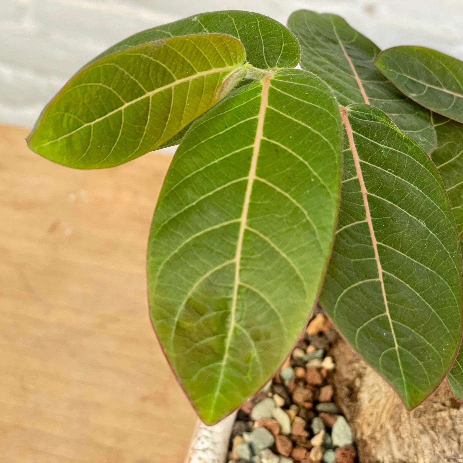 Phyllanthus Mirabilis is a caudex-forming shrub from South-East Asia. Leaves close at night with a “butterfly” action. New leaves are a stunning copper red.