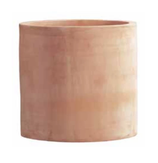 The “Simple cylinder” is a thick-walled unglazed clay pot with a drain hole. It’s heavy and durable with a slightly distressed, dusty finish and pink tones – great for adding a classic Southwestern vibe to your home or patio
