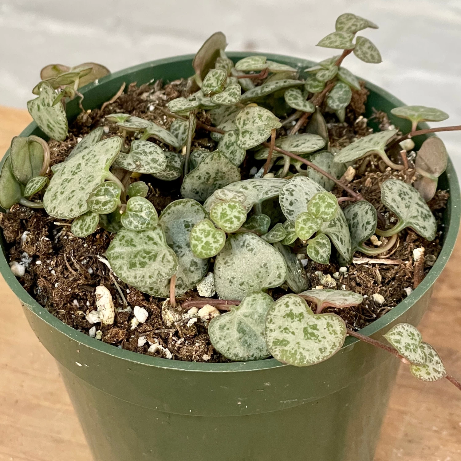 An unusual but easy to grow indoor trailing plant. Vines typically reach 12″ or more. Prefers bright indirect light and warmth. Water sparingly as soil drys.