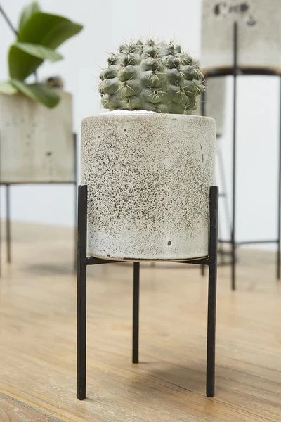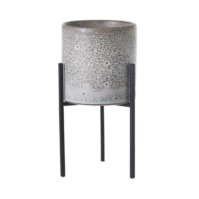 Veranda Speckled Ceramic planter with metal stand by Accent Decor.